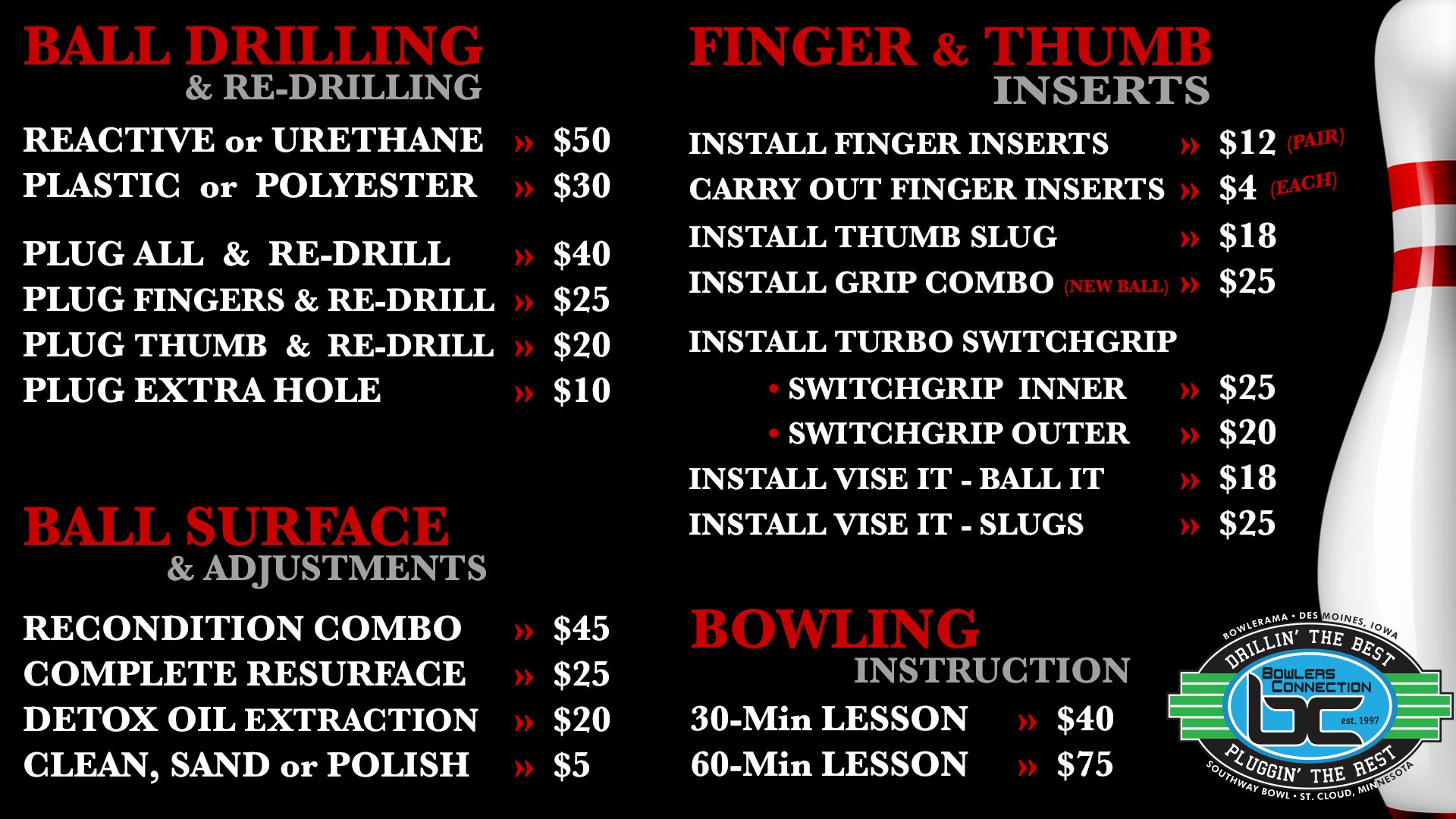 *Rates, Hours, & Lane Availability May Be Subject to Change - Feel Free to Call Ahead (320) 253-7414